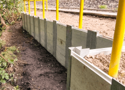 Anchor Systems’ GRP Ballast and Spoil Retention System is a modern solution for industrial and infrastructure applications, delivering superior performance where traditional materials often fall short. Using our Anchor Screw foundations and Ballast Board Posts, along with GRP Ballast boards, the system comes together to offer a quick-to-install solution that minimises waste and can meet the most demanding environmental and structural challenges. This innovative product transforms how professionals approach working platforms, retaining structures, and site management.