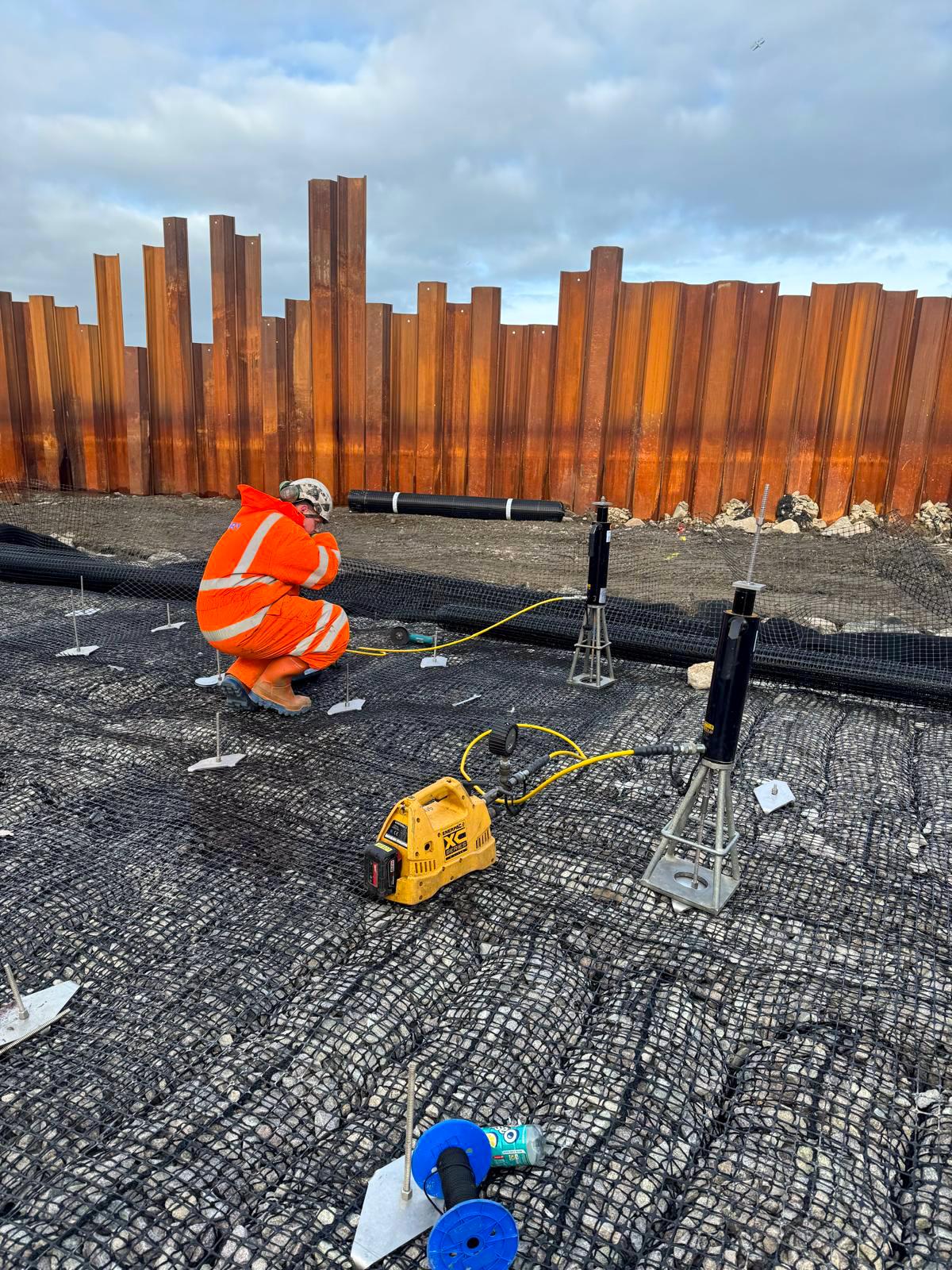 Prior to construction, a series of on-site validation tests were undertaken to confirm the performance of the selected Vulcan Earth Anchor ground anchor system within the site’s ground conditions.