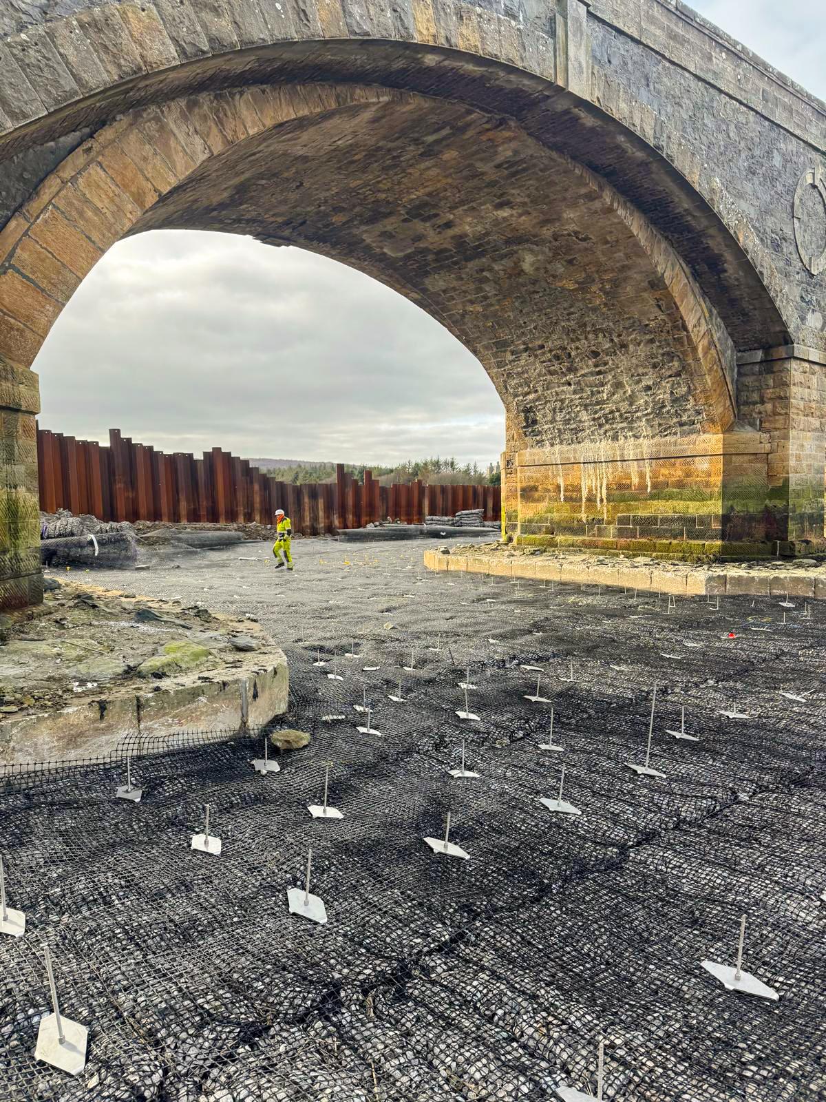 Through pre-construction testing and the use of corrosion-resistant materials, the Vulcan Earth Anchor system provides a reliable ground anchor solution for riverbed stabilisation and erosion control, helping protect the foundations of Banff Bridge for the long term.