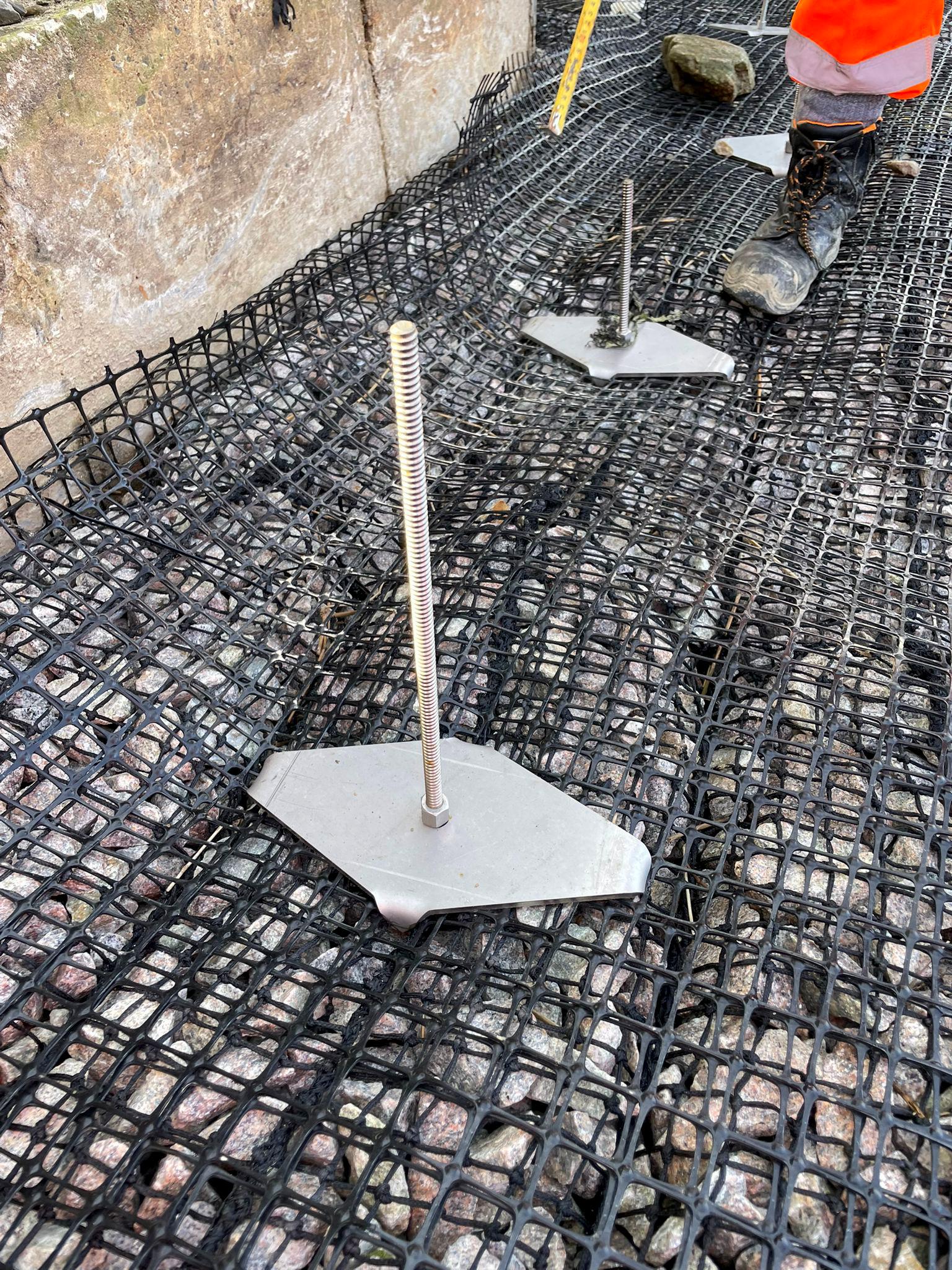 - Provide reliable ground anchor restraint for rock mattress units