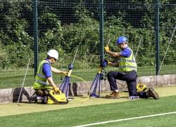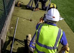 Anchor Systems have worked with Covair Structures for many years in providing anchoring solutions and concrete preplacement systems for an array of projects. For this project, an initial site test was conducted by ASIL operatives to determine the most suitable and cost-effective Vulcan Earth Anchor for the required load. After the initial site tests were conducted, the AS-90 Vulcan anchor was confirmed in achieving a 65kN SWL at a 3m driven depth within the available ground conditions. 240 fully galvanised systems were installed at pre-marked positions around the pitch at a 65° angle from horizontal. The anchor was then stressed to the required holding capacity (64kN); this work was carried out over a ten working day period. The alternative solution was to install a concrete ring beam over a four week installation and setting process. This system therefore offered a large cost and time saving benefit to the client as well as minimal mobilisation of vehicle and installation plant.