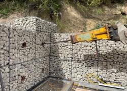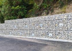Installation took place over two days, with a total of 14 Vulcan Earth Anchors installed through the pre-constructed gabion baskets. To facilitate installation, the baskets were designed with ducts to allow the anchors to be driven through efficiently.